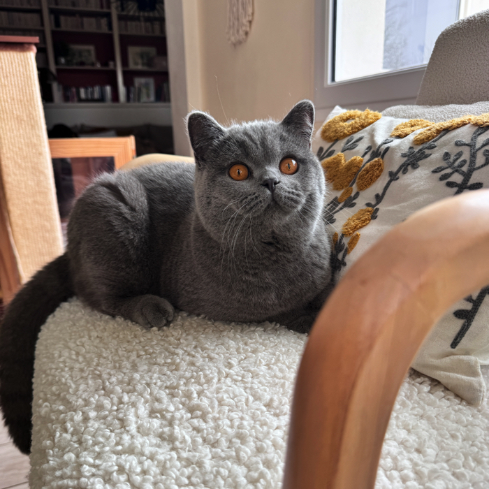 Au delà de ce physique, Jack marie la douceur de sa mère Ruby et le flegme imperturbable de son père Ourson. C’est un chat posé, dont la tête bien ronde et les grands yeux ambre intense reflètent une sérénité absolue. Son pelage bleu, court et dense vient parfaire ce joli portrait.